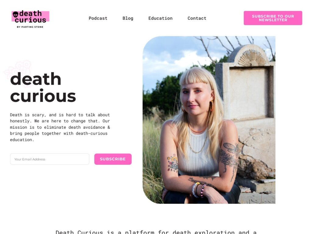 Death Curious is a platform for death exploration and a community of like-minded, curiously death positive people. We imagine a future in which talking about death is normalized, comfortable, and even encouraged. Through death curious education, our goal is to help you better understand your own mortality, gain confidence talking to others about theirs, and to build a supportive community of mortality explorers. [LINK]