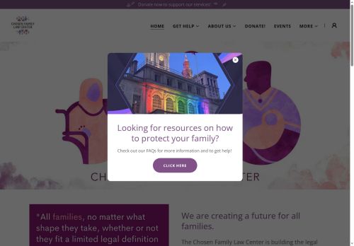 The Chosen Family Law Center, Inc. is a nonprofit corporation dedicated to cultivating equitable social and legal recognition of Lesbian, Gay, Bisexual,Transgender, Queer, Intersex, and Asexual (LGBTQIA) and polyamorous families and individuals, as well as other underserved family forms such as platonic co-parents or multigenerational families; eliminate prejudice and discrimination and defend human, civil, and other rights for these communities; and offering education to lawyers, therapists, and other professionals to enable them to best serve these communities. [LINK]