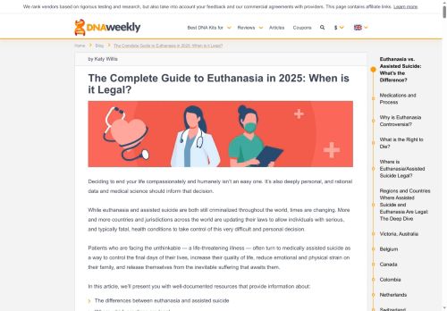Deciding to end your life compassionately and humanely isn’t an easy one. It’s also deeply personal, and rational data and medical science should inform that decision. While euthanasia and assisted suicide are both still criminalized throughout the world, times are changing. More and more countries and jurisdictions across the world are updating their laws to allow individuals with serious, and typically fatal, health conditions to take control of this very difficult and personal decision. Patients who are facing the unthinkable — a life-threatening illness — often turn to medically assisted suicide as a way to control the final days of their lives, increase their quality of life, reduce emotional and physical strain on their family, and release themselves from the inevitable suffering that awaits them. In this article, we’ll present you with well-documented resources that provide information about: The differences between euthanasia and assisted suicide; Where which practices are legal; A brief history of the laws in each jurisdiction; Which countries allow noncitizens to travel there for the procedure; The costs associated with the medications and medical treatment; The specific legal process you must undergo in each location. [LINK]