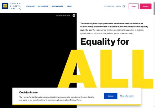 The Human Rights Campaign is the nation’s largest LGBTQ+ civil rights organization. They drive impact by inspiring, engaging and mobilizing millions of pro-equality voters and supporters to elect pro-equality leaders and to demand equity-based policies and legislation; changing hearts and minds through programming that increases understanding, visibility and support for the diverse LGBTQ+ community in all aspects of our identities; and transforming the institutions and systems that shape our everyday lives by advancing LGBTQ+ inclusive policies and practices in schools, workplaces, hospitals, communities and beyond. [LINK]