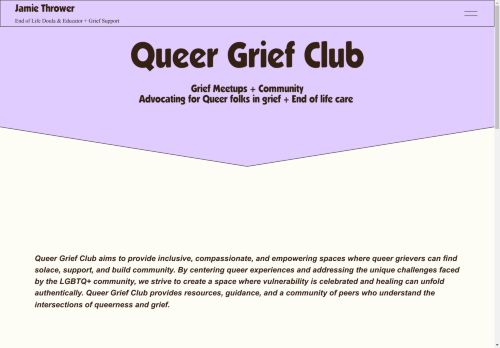 Queer Grief Club aims to provide inclusive, compassionate, and empowering spaces where queer grievers can find solace, support, and build community. By centering queer experiences and addressing the unique challenges faced by the LGBTQ+ community, we strive to create a space where vulnerability is celebrated and healing can unfold authentically. Queer Grief Club provides resources, guidance, and a community of peers who understand the intersections of queerness and grief. [LINK]