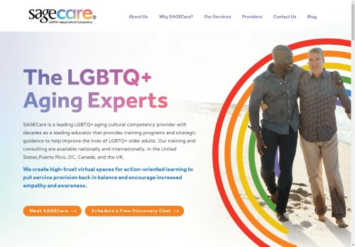 SAGECare is a leading LGBTQ+ aging cultural competency provider with decades as a leading educator that provides training programs and strategic guidance to help improve the lives of LGBTQ+ older adults. Our training and consulting are available nationally and internationally, in the United States,Puerto Rico, DC, Canada, and the UK. [LINK]