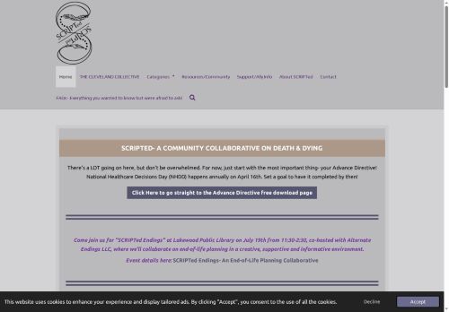 SCRIPTed is a community-based collaborative on death and dying, offering tools, workshops, and partnerships to help people navigate the end of life with more clarity, dignity, and connection. SCRIPTed was born out of a simple truth: talking about death doesn’t have to be cold, clinical, or avoided. It can be creative. Intentional. Even beautiful. This is where planning becomes storytelling — and where support becomes a shared script that no one has to write alone. Though based in Cleveland, Ohio, their work is designed to connect people across the country, especially in areas where inclusive options can be harder to find. [LINK]