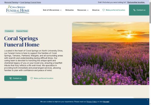 Coral Springs Funeral Home serves families of all faiths and customs in Coral Springs, Margate, Parkland, Tamarac, Plantation, Weston, Coconut Creek, Boca Raton and surrounding communities.